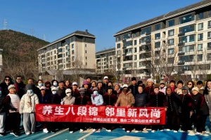 12月4日,煙臺二中萊山校區(qū)在黨支部組織委員姜妍的帶領(lǐng)下,丁元威、王開升、趙麗媛、姚宇宸四位老師來到“雙報(bào)到”單位——御龍山社區(qū),開展了一場充滿活力和溫暖的八段錦教學(xué)交流活動。