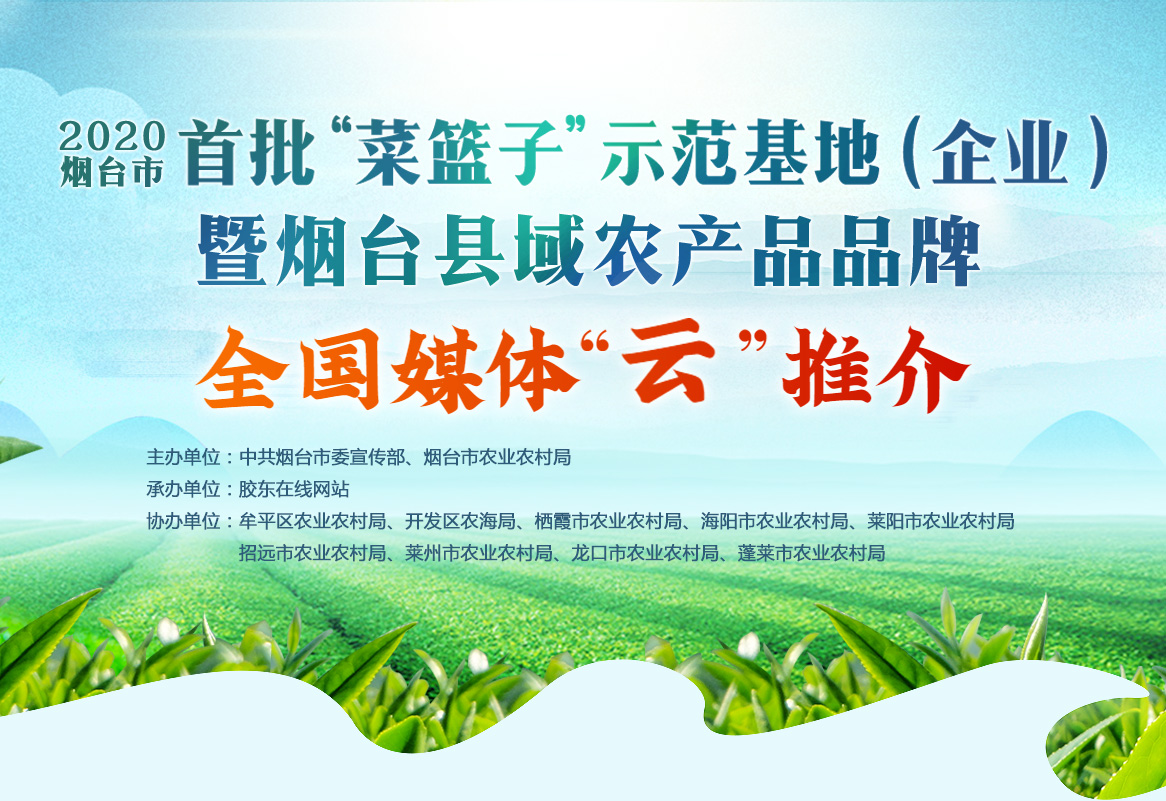為擴大煙臺“菜籃子”示范基地(企業(yè))品牌知名度,強化煙臺縣域農(nóng)產(chǎn)品品牌推廣,2020年7月-8月期間,由中共煙臺市委宣傳部、煙臺市農(nóng)業(yè)農(nóng)村局主辦,膠東在線網(wǎng)站承辦,策劃推出“2020煙臺市首批‘菜籃子’示范基地(企業(yè))暨煙臺縣域農(nóng)產(chǎn)品品牌全國媒體‘云’推介”活動。此次活動將針對部分“菜籃子”示范基地(企業(yè))、縣域農(nóng)產(chǎn)品品牌進行深度采訪報道,同時,活動還將邀請全國媒體,依托各自的媒體平臺,對煙臺縣域農(nóng)產(chǎn)品品牌進行“云”報道。