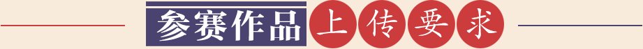 每個作品(系列作品)上傳照片不多于10張,圖片要求精度300dpi、JPG/GIF/PNG格式保存,單張大小不超過10MB;視頻作品以MPEG-4格式上傳形式發(fā)送,時間不超過5分鐘,文件大小不得超過50M,以壓縮包形式發(fā)送。